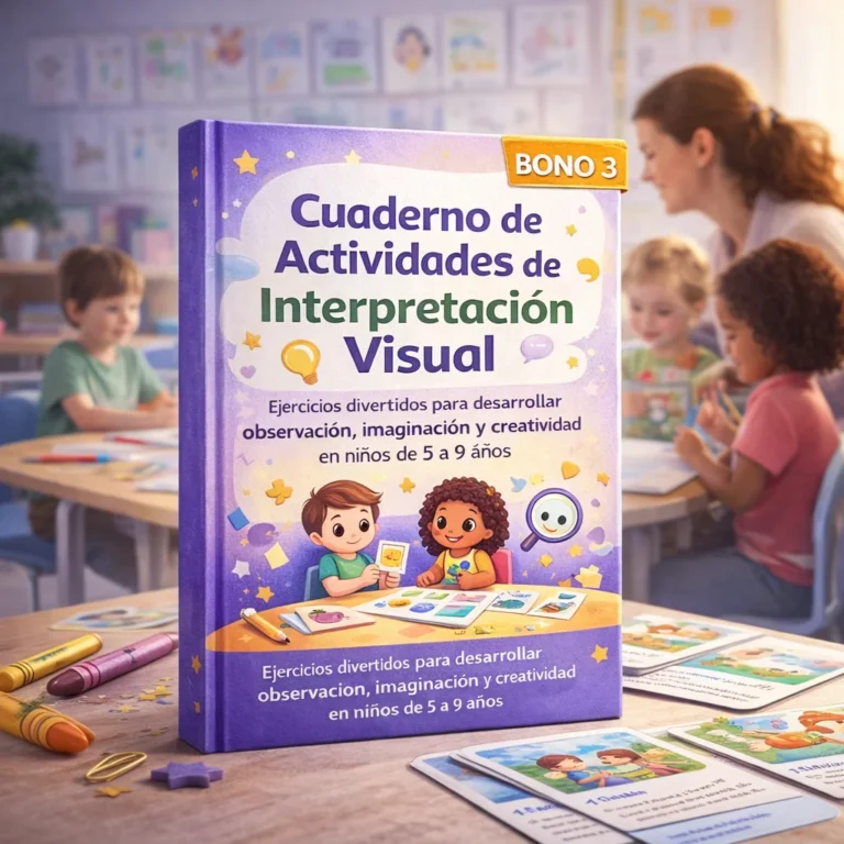 BONO 3 - Cuaderno de Actividades de Interpretación VisualUn completo Cuaderno de Actividades de Interpretación Visual con ejercicios creativos que ayudan a los niños a observar, describir e imaginar historias a partir de imágenes. Incluye múltiples escenas educativas que desarrollan lenguaje, creatividad y pensamiento crítico de forma divertida. Ideal para niños de 5 a 9 años.